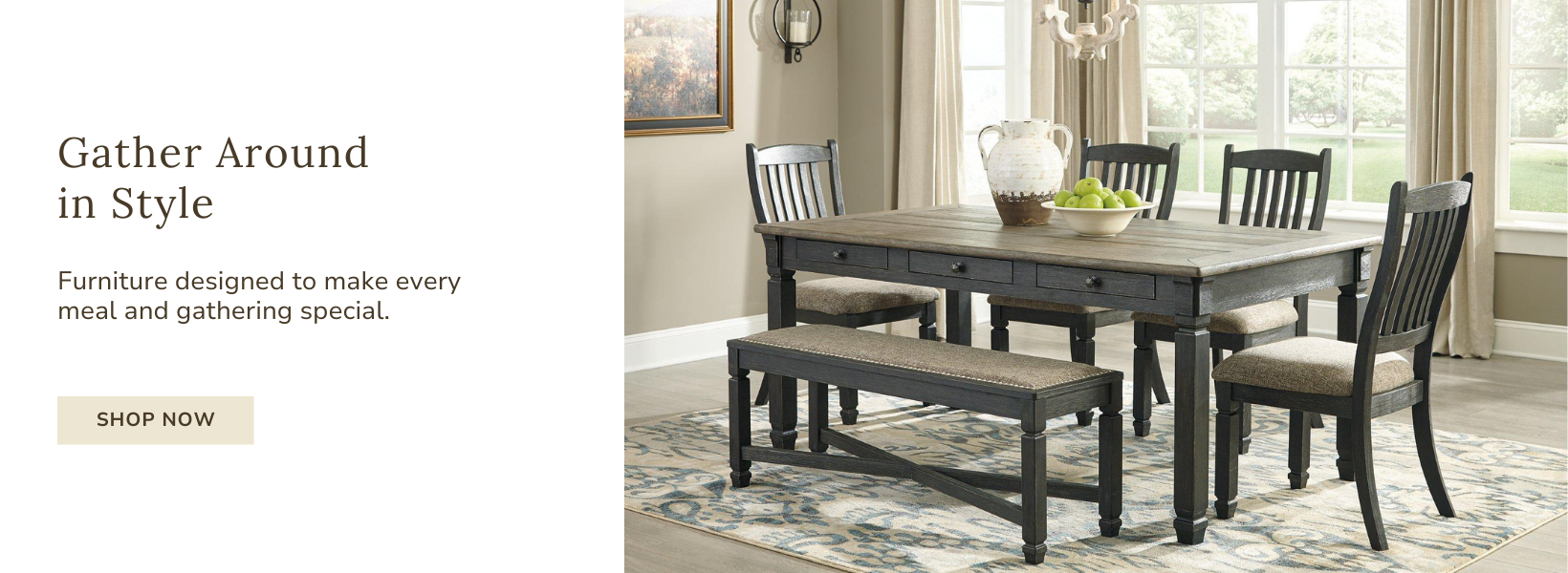 View full detailsThis dining package sits comfortably at the intersection of modern lodge and farmhouse aesthetics. Your warm and welcoming disposition is reflected...